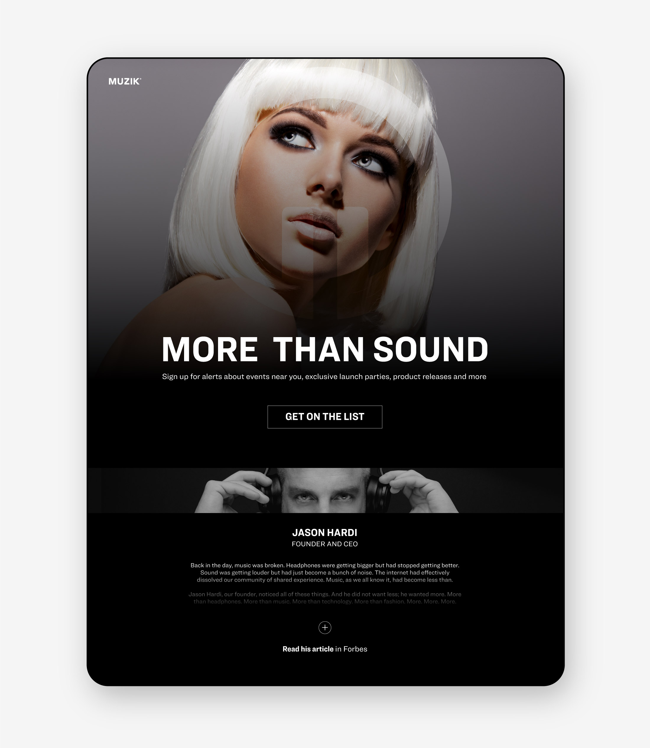 Muzik is a consumer electronics company that creates social media-connected headphones. Allio Digital provided art direction for a series of marketing campaigns promoting new wearable product lines, and generated visual and motion experiments for use in promotional graphics and video elements.